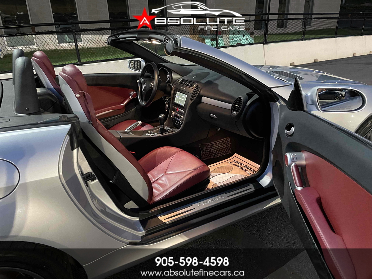 JUST ARRIVED AT ABSOLUTE MERCEDES BENZ SLK 350 6 SPEED MANUAL SILVER ON RED EXCELLENT CONDITION LOW KM WELL MAINTAINED CERTIFIED.